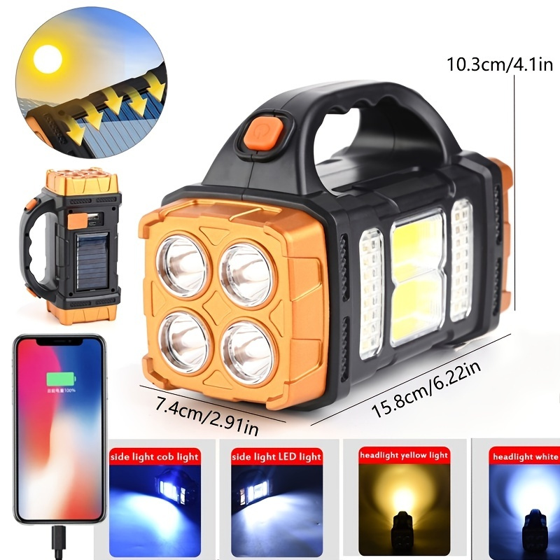Home > 1pc Multifunctional Solar LED+COB Light With Handle; USB Charging Waterproof For Outdoor Camping Safety Emergency At Night