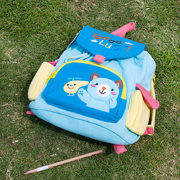 [Blue Bear] Embroidered Applique Kids Fabric Art School Backpack / Outdoor Backpack (8.7*10.2*4.3)