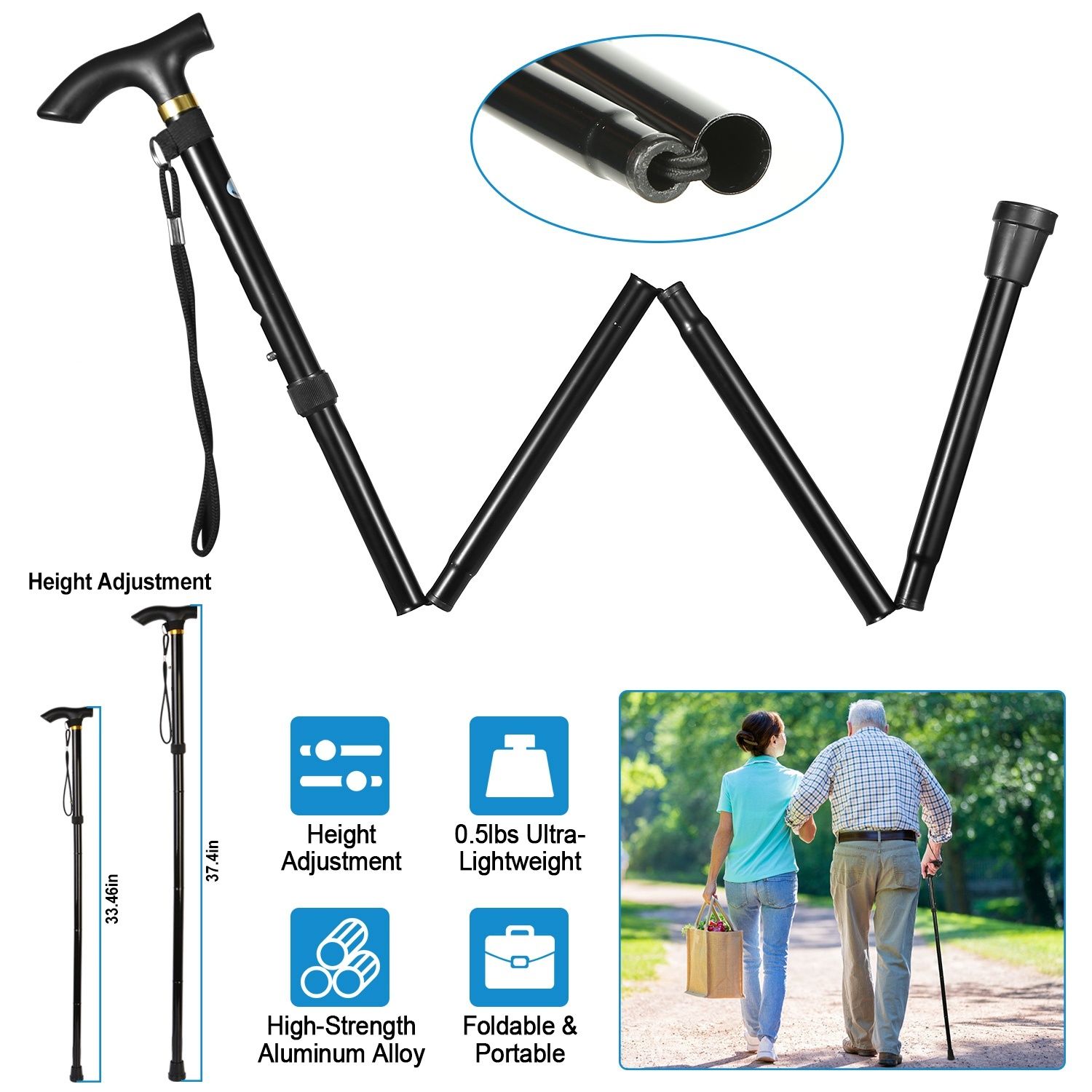 * RELIABLE WALKING AID STICK: Our adjustable lightweight folding cane can provide a strong support to keep your balance and is a reliable walking aid stick for both men and women, young and elder people when walking, hiking or trekking.